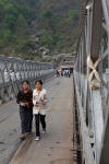 Kurz vor Khudi kommt uns ein Mann auf einem Moped entgegen und macht Werbung für seine Lodge in Khudi. Nach 2 Stunden erreichen wir Khudi. Über eine Eisenbrücke überqueren wir den Marsyandi und sehen direkt auf der anderen Flussseite die Lodge, die uns der Mopedfahrer genannt hatte.