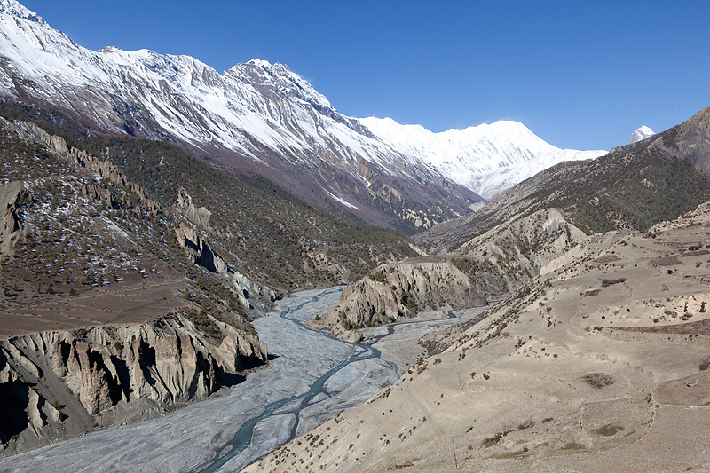 Im Schatten liegt zwar noch etwas Schnee auf den Wegen, aber das ist kein Problem. Wir lassen uns beim Aufstieg viel zeit, damit der Körper sich langsam an die Höhe gewöhnen kann. Bei dem Ausblick auf die Annapurna fällt es auch nicht schwer häufiger mal stehen zu bleiben und die Aussicht zu genießen.