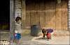 Nachdem wir auch den oberen Teil von Sinuwa erreicht haben, ändert sich nun allmählich die Landschaft. Die Felder und die zahlreichen kleinen Dörfchen, durch die man bisher gegangen ist, verschwinden und man kommt nun in eine urwaldähnliche Landschaft. Man wandert durch große Bambuswälder bis auf eine Anhöhe von ca. 2600 Metern Höhe und steigt von dort aus wieder 200 Meter ab nach Bamboo. Bamboo ist kein normaler Ort mehr, sondern ein Zusammenschluss mehrerer Lodges. Die Temperaturen sind inzwischen so weit gefallen, dass wir unsere Mittagspause in einer der Lodges machen und nicht, wie die vorherigen Tage, draußen vor der Lodge rasten. Und diese Entscheidung ist genau richtig. Denn kaum haben wir die Lodge betreten, bricht draussen ein riesiges Unwetter mit Blitz und Donner los. Es regnet wie in den besten Monsunzeiten in Nepal. Zunächst einmal stört uns das Unwetter nicht sonderlich. Wir sitzen im Trockenen, bekommen was Ordentliches zu essen und heißen Tee und wir gehen davon aus, dass es sich bei dem Gewitter nur um eine kurze Störung handelt. Außerdem haben wir mit zwei Jungs der Lodge eine Menge Spaß. Aber das Gewitter will nicht aufhören. Als die Zeit immer weiter fortschreitet, entschließen wir uns, als der Regen ein klein wenig nachzulassen scheint, uns auf den Weg zu machen. Laut Führer haben wir noch knapp 4 Stunden Weg bis zum Himalaya Hotel, unserem heutigen Etappenziel, vor uns. Kaum sind wir unterwegs, beginnt das Unwetter erneut mit aller Heftigkeit. Es blitzt und donnert und wir fühlen uns alles andere als wohl dabei. Vor allem aber regnet es wieder sehr stark und in kürzester Zeit sind wir völlig durchnässt. Der Weg wird immer rutschiger, die kleinen Gebirgsflüsschen die wir überschreiten müssen schwellen immer stärker an, die kleinen Holzbrücken sind sehr rutschig und dazu geht es immer bergauf. Obwohl man sich sehr auf den Weg konzentrieren muss, sind wir bereits nach 45 Minuten in Doban auf ca. 2600 Metern Höhe angekommen. Die Zeit laut Reiseführer beträgt 2 Stunden. In den wenigen Lodges in Doban sitzen die Trekker unter dem Dach im Trockenen und schauen zu, wie wir völlig durchnässt an ihnen vorbei ziehen. Es gibt auch kein einziges freies Bett mehr in Doban und wir hoffen nur, dass unsere Träger rechtzeitig im Himalaya Hotel waren, um uns dort die nötigen Betten zu reservieren. Hinter Doban lässt der Regen dann langsam nach und kurzzeitig hört es sogar mal auf zu regnen. Aber das ist nur von kurzer Dauer. Für eine Shiva-Gedänkstätte zwischen Doban und dem Himalaya Hotel haben wir kaum einen Blick übrig. Wir läuten zwar die Glocken, die an einem Baum gebunden hängen, nehmen uns aber ansonsten vor, hier bei hoffentlich trockenem Wetter bei der Rückkehr zu verweilen. Kurz vor unserem Ziel müssen wir an zwei Stellen Schneelawinen überqueren. Natürlich kommt einem sofort der Hinweis aus den Reiseführern in den Sinn, die in diesem Abschnitt vor Lawinen warnen. Direkt in der Nähe des Himalaya Hotels ist auch bereits vor einigen Jahren eine nepalische Trägermannschaft von einer Lawine erfasst worden. Nach 75 Minuten haben wir von Doban auch die Strecke zum Himalaya Hotel geschafft. Klitschnass erreichen wir die Lodge auf knapp 2900 Metern Höhe. Prem, Birjar und Sandra stehen dick vermummt unter dem Vordach der Lodge und erwarten uns. Stolz erzählen sie uns, dass sie tatsächlich Zimmer für uns reservieren konnten. Nachdem wir unsere nassen Sachen gegen trockene Kleidung getauscht haben, geht es in den Gastraum der Lodge. Dort ist es mollig warm. Unter dem Tisch steht ein Kerosinbrenner der für angenehme Wärme sorgt. Schnell holen wir unsere nassen Hosen und Jacken zum Trocknen rüber. Die Lodge ist total überfüllt und so müssen alle etwas enger zusammenrücken. Aber die Hauptsache bei diesem Wetter ist, dass man ein Dach über dem Kopf hat und im Warmen sitzt. Nach dem anstrengenden Tag wird es heute nicht so spät und schon kurz nach dem Abendessen verziehen wir uns in die Zimmer zum Schlafen.