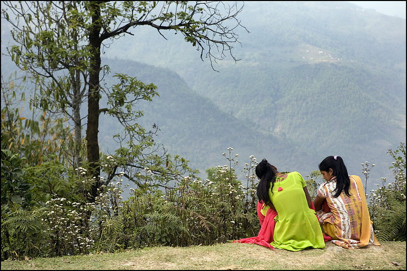 Direkt zu Beginn geht es über Steinstreppen steil bergauf. Diese Treppen werden uns die nächsten Tage ständig begleiten. Sehr schnell gewinnt man dabei allerdings an Höhe und schon bald hat man einen wunderschönen Ausblick ins Tal, wo wir noch vor kurzem gesessen haben. Nach dem ersten steilen Anstieg geht es dann zum Glück etwas weniger steil weiter. Obwohl der Weg zum größten Teil im Schatten liegt, ist es doch sehr warm und der Schweiß läuft. Durch die typischen nepalischen Terrassenlandschaften steigen wir in knapp 2 Stunden auf nach Dhampus, auf eine Höhe von 1770 Metern. In den meisten Reiseführern wird vor Dhampus als der Hauptstadt der Diebe in Nepal gewarnt. Wir haben zum Glück keine negativen Erfahrungen gemacht und können diesen Hinweis nicht bestätigen.
