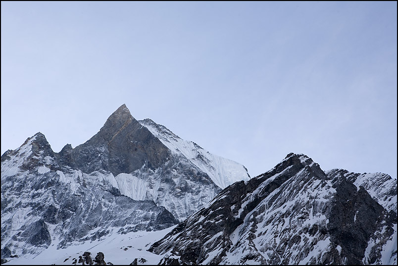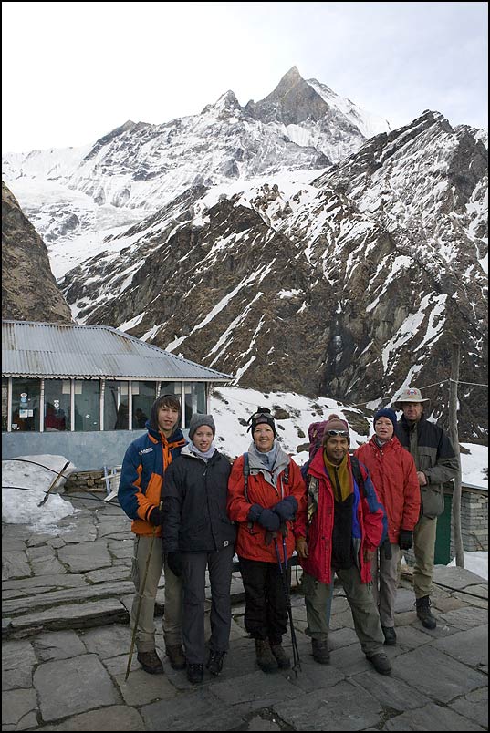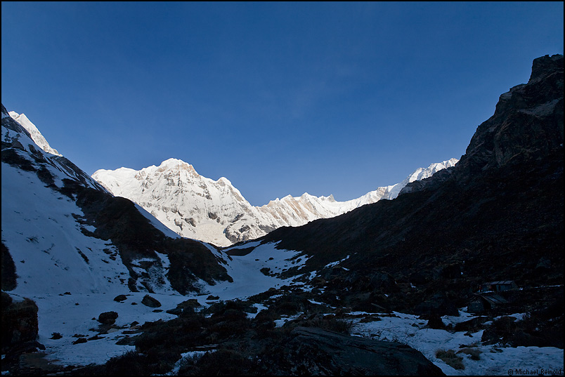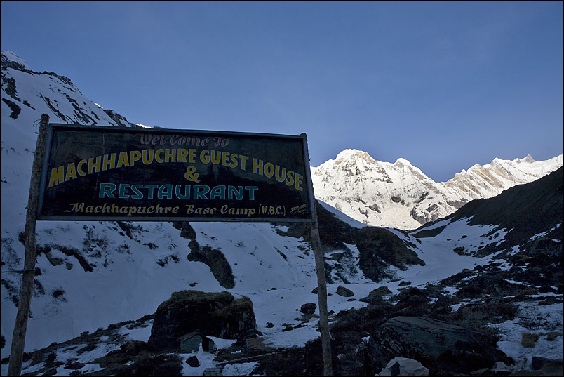 Sinuwa Ein Doppelklick auf ein Foto vergrößert das Bild! Am Morgen ist es bitterkalt. Draußen ist alles mit einer dünnen Eisschicht überzogen. Die Aussicht ist gigantisch. Blauer Himmel vor der Kulisse des Annapurna Sanctuary; dafür nimmt man die Minustemperaturen gerne in Kauf.