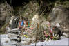 Im Himalaya Hotel halten wir uns nicht auf und steigen direkt weiter ab bis Doban. Wir erreichen wieder das Shiva-Denkmal, wo wir vor 3 Tagen in strömendem Regen schon einmal vorbeigekommen sind. Diesmal ist das Wetter schön und wir machen dort eine kurze Pause.