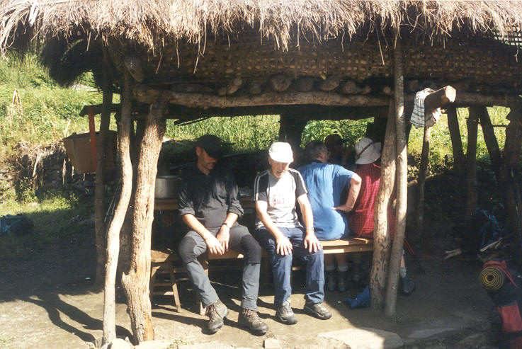 Pause, bevor uns ein weiterer steiler Aufstieg bevor steht. Die Behausungen die