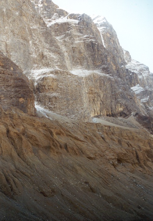 Lawinen die Westwand herunterdonnern. Als in der Nacht die erste Lawine