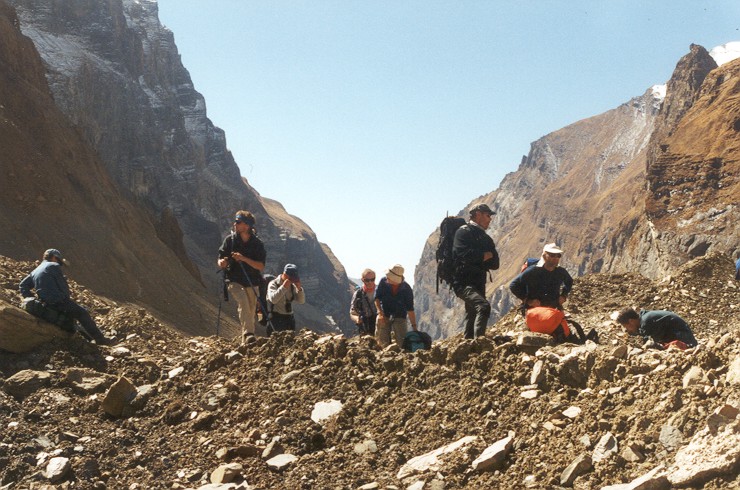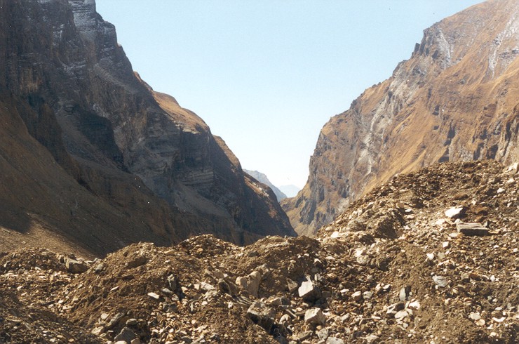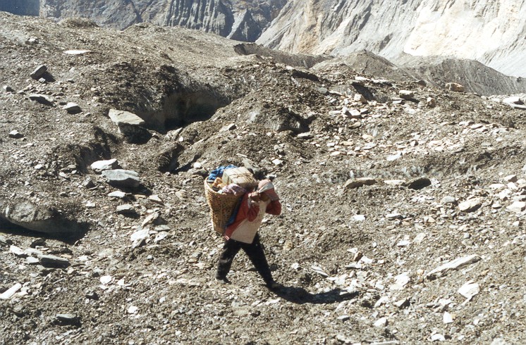 einer guten Stunde Gehzeit gelangen wir zu den Ausläufern des Chonbardangletschers. Dieser Teil des Gletschers ist vollständig mit Schutt