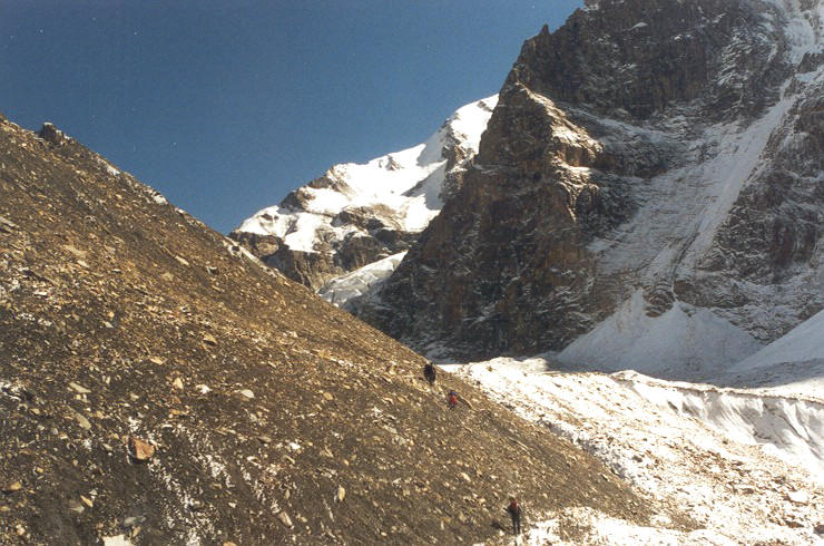 Seitenmoräne. Nach etwa 1,5 Stunden folgt dann ein steiler Anstieg auf einen