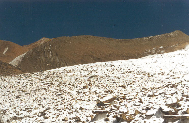 Bergrücken. Nun merkt man doch die Höhe von 5000 Metern, man ist sehr schnell