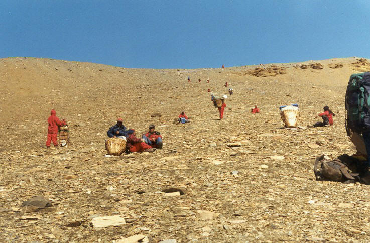wir deshalb eine längere Pause ein, um auf die Träger zu warten, die unter