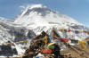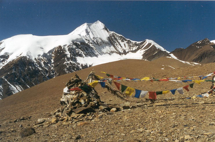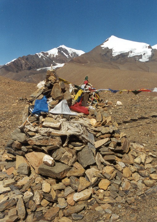 Wieder begrüßen uns im Wind flatternde Gebetsfahnen. Wir sind