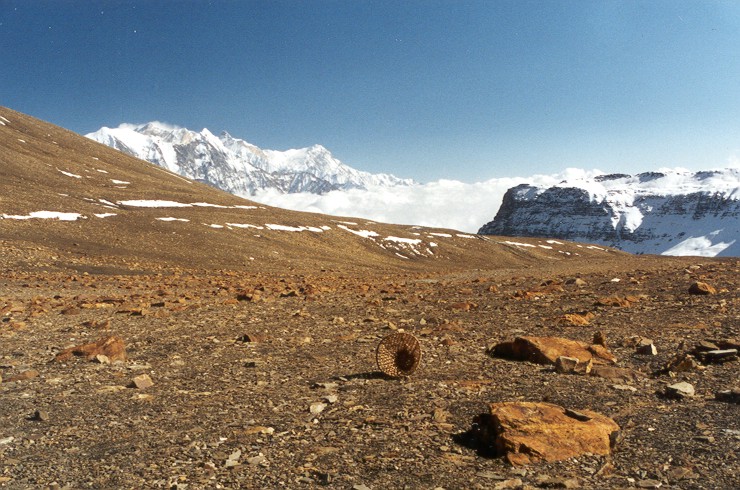 kräftiger Wind entgegen und über der Annapurnagruppe, die nun zum ersten Mal in