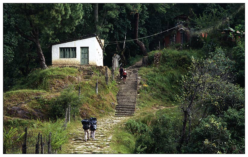Kathmandu führt, entlang. Über Steinstufen gewinnen wir so sehr schnell an Höhe.