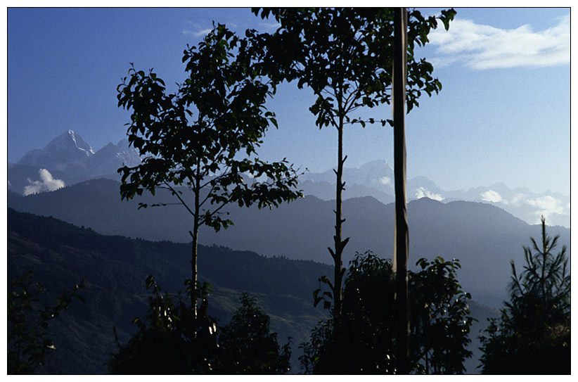 Mal haben wir einen freien Blick auf die schneebedeckten Berge des Langtang. Zum