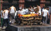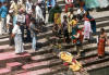zu werden ist der Wunsch vieler Hindus. Die Leiche wird auf einer Bahre zu