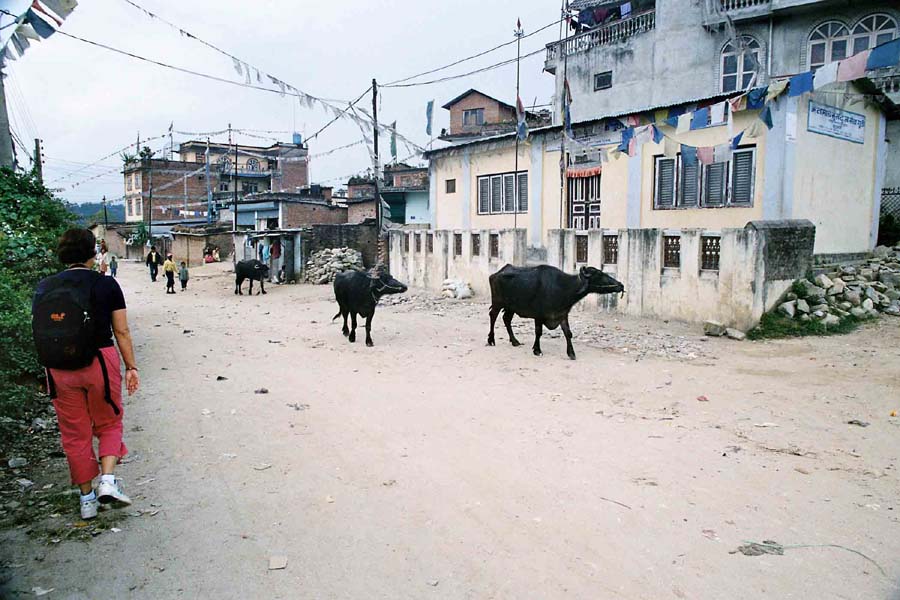 anderen Ort wandern. Wenn man in Bodnath vom Platz aus auf die Strasse kommt,