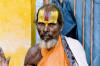 Saddhus verehren. Anhänger Shivas tragen waagerechte Zeichnungen auf der Stirn,