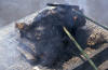Scheiterhaufen gelegt wurde, wird er noch einmal mit Holz und Stroh bedeckt.