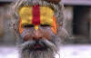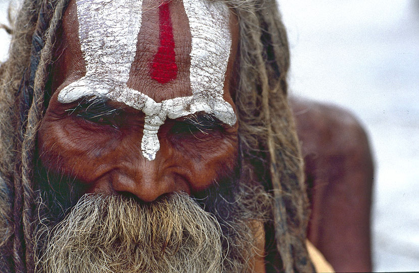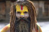 Gesichtsbemalung. Vorsicht beim Fotografieren! Die Saddhus erwarten eine kleine