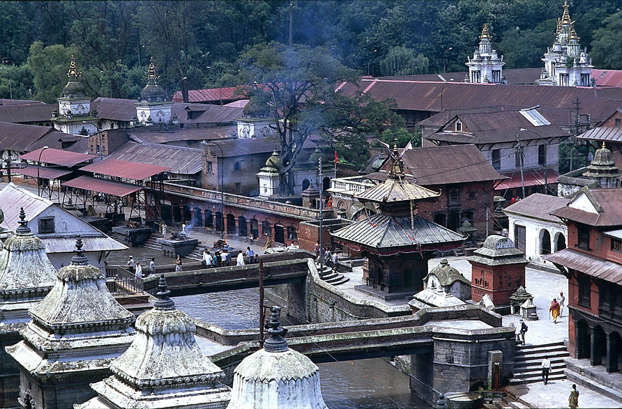 Brücke über den Bagmati getrennt. Die Arya Ghats sind die Verbrennungsstätten
