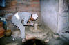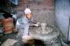 ein alter Autoreifen mit Felge als Drehscheibe, der per Hand angetrieben wird.