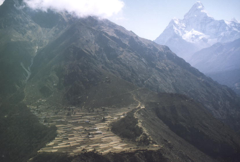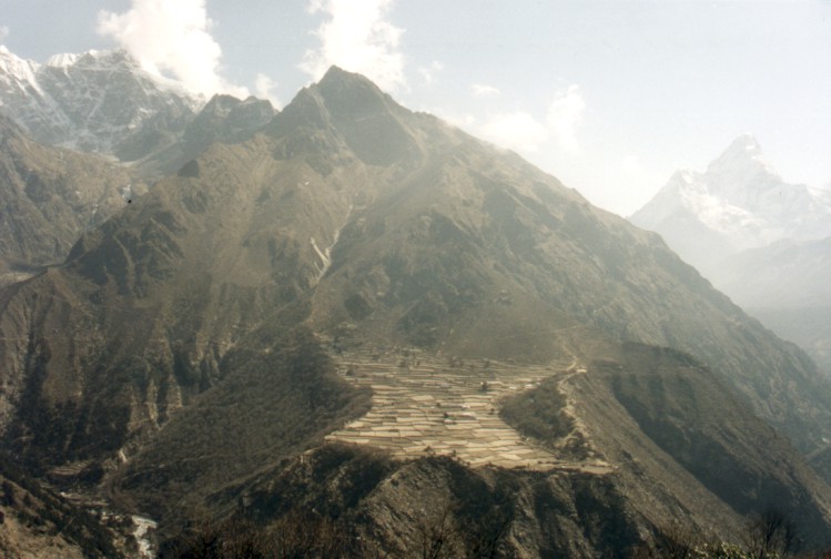 Talseite geht es über Phortse, auf der rechten Talseite über Tengboche. Für