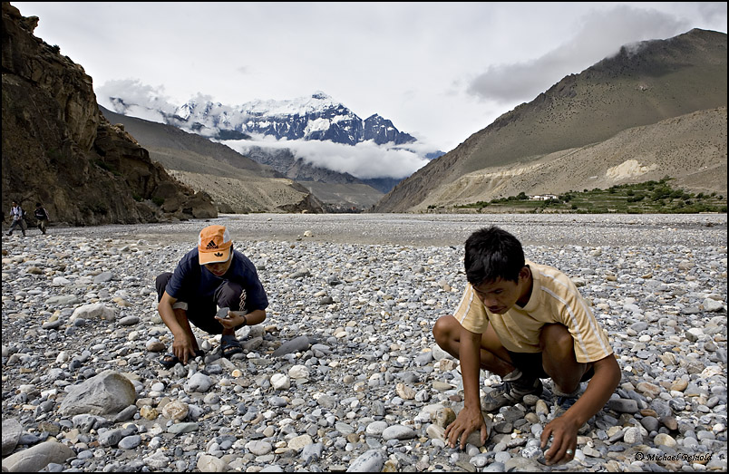 wieder durch das Flussbett des Kali Gandaki. Heute finden wir im Flussbett