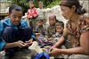 von einer ganzen Schar Kindern umlagert, für die wir offensichtlich eine