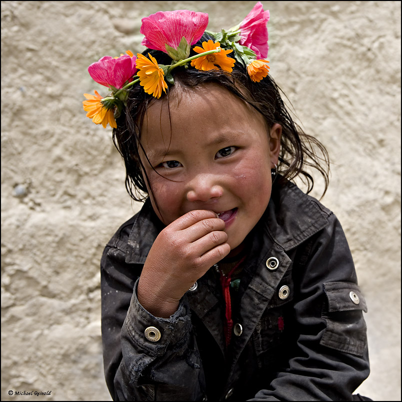 einen gepflückten Blumenstrauß. Das nehmen die anderen Kinder schnell zum