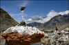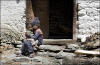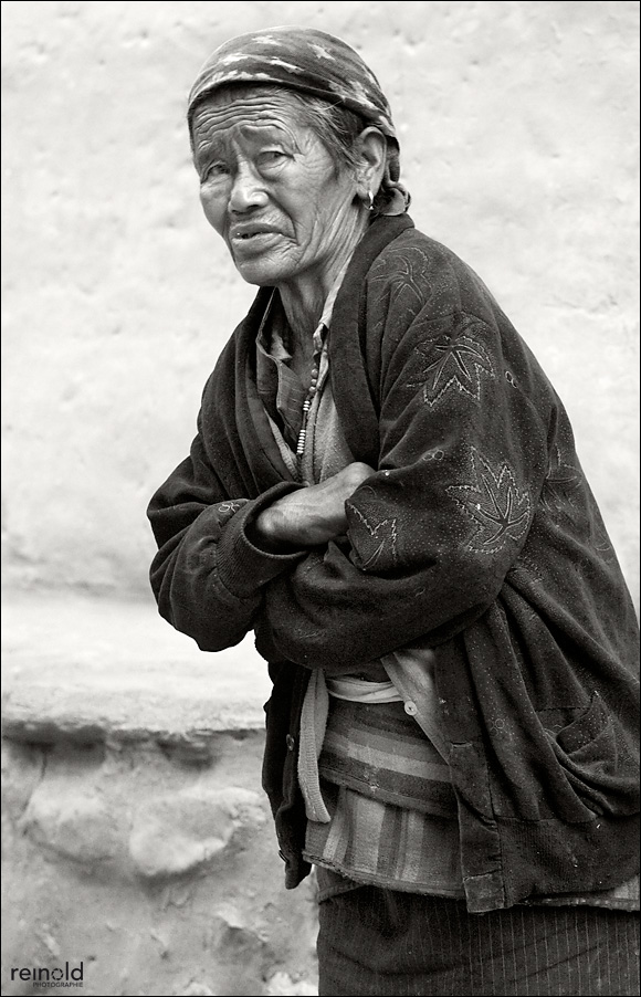 und Grau bemalt. Eine alte Frau, die hinter dem Chörten sitzt, deutet mir immer
