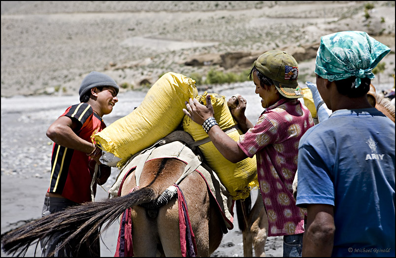 Männern mit Säcken bepackt werden. Natürlich nutze ich die Pause, um mir diese