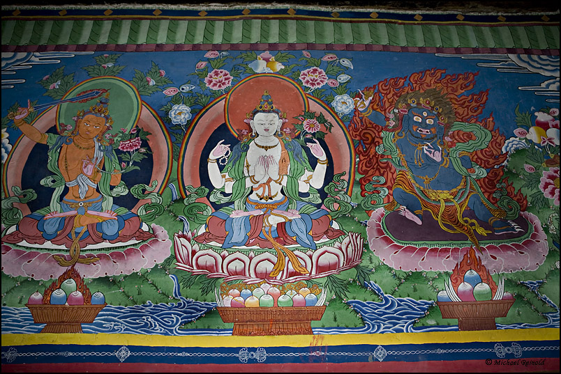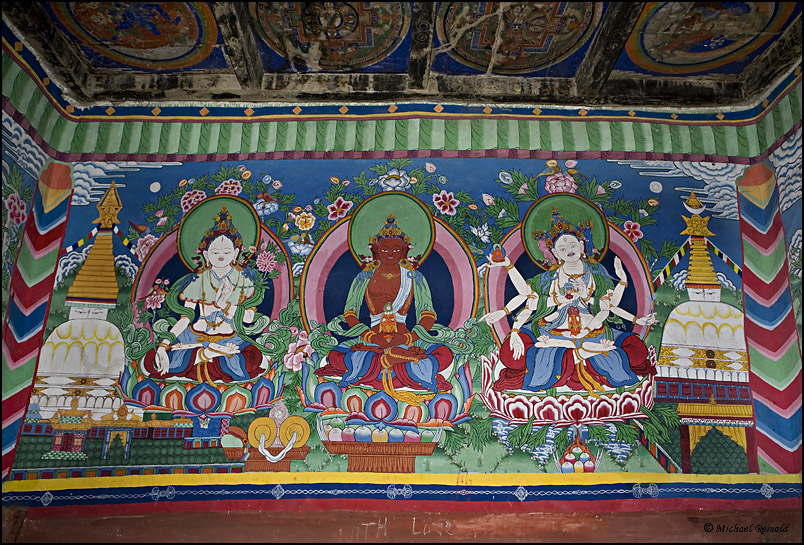 wundervollen Malereien ausgestattet und von Außen in den Sakyafarben Ocker, Weiß