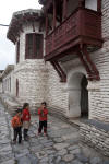 tolle Holzschnitzereien verzieren Holzbalkone, Fenster und Türen.