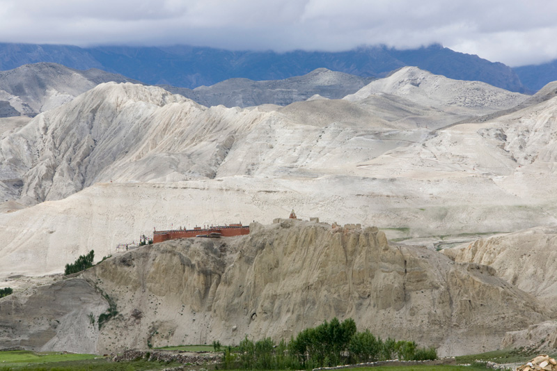 Thinkar Ein Doppelklick auf ein Foto vergrößert das Bild! Unser erster Tagesausflug von Lo Manthang führt uns nach Thinkar, dem Sommersitz des Königs von Mustang. Von Lo geht es zunächst über den Fluss in Richtung Namgyal Gompa, einem wunderschönen Kloster auf einem Hügel am Rande von Lo. Wir lassen das Kloster aber zunächst am Wegrand liegen und gehen in Richtung des Ortes Phuwa. Aber auch diesen Ort lassen wir rechts liegen und erreichen nach ca. 2 Stunden Thikar. Auf diesem Weg haben wir immer wieder einen tollen Blick in Richtung Süden auf das Annapurnamassiv.